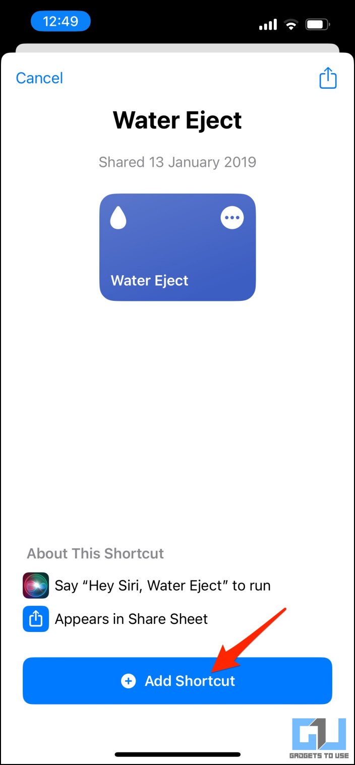 After adding the iPhone water eject shortcut to your shortcut library click on it to begin the operation. The iPhone Water Ejects Siri shortcut will be added to the shortcut library in this method. 1 Tap this iCloud link on your iPhone to download the Water Eject shortcut.